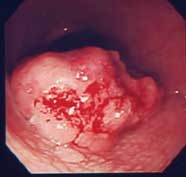 心窩部痛、食欲不振、黒色便を訴えて来院。抗潰瘍剤で症状は少し軽減しましたが、これまで胃の検査をしたことがなかったので、内視鏡検査を施行いたしました。胃に進行癌を認め、すぐに手術の方向で病院を紹介いたしました。癌は治癒切除(治ることが期待できる手術)でした。症状があって、検査を受けたことがない方は、積極的に検査を受けることをお勧めします。